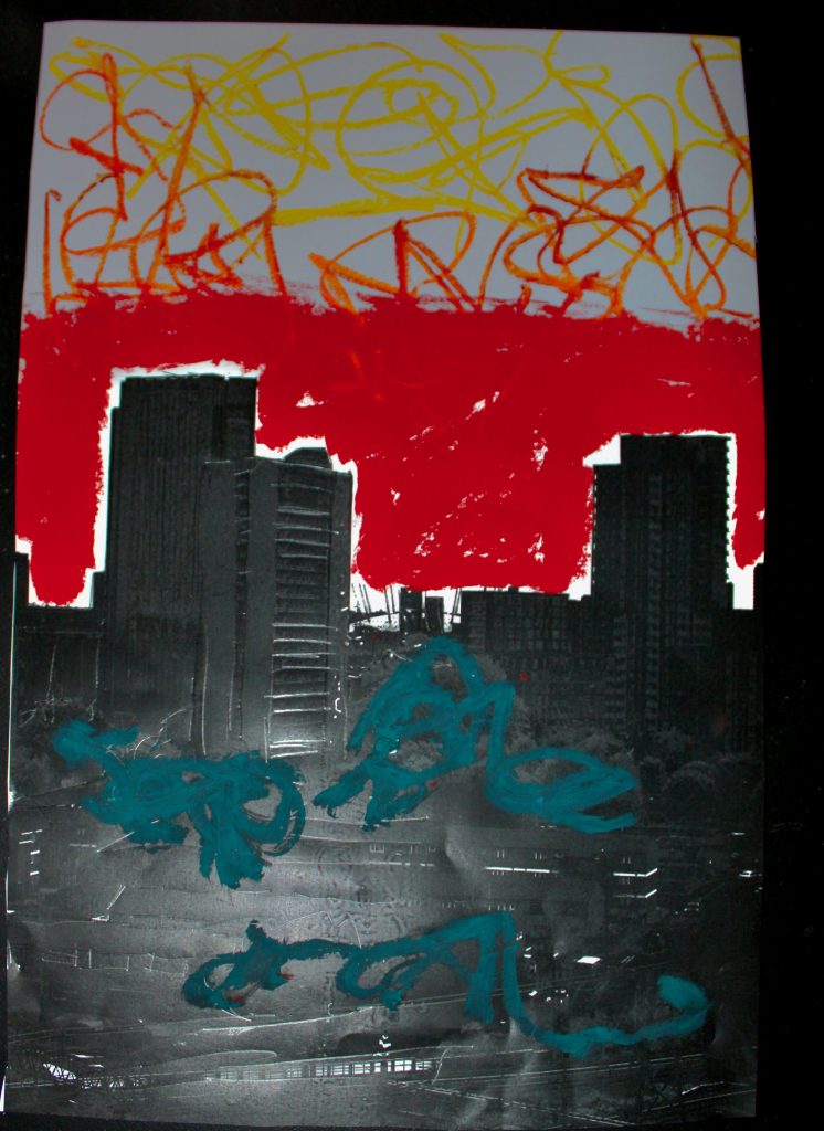 4- This is a more abstract piece that was influenced by how the colours seen across the city made me feel and how they connected to my self and my own experiences. All the colours that i saw resembled or inflicted memories and feelings within me. Weather it was a consequence decision to connect the colours to emotions or not it did make me feel something. What i discovered about colour is that it connects with everyone in a completely different way.
