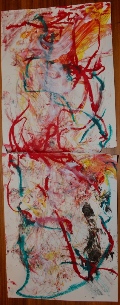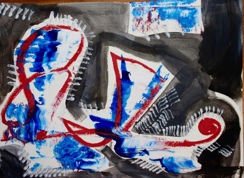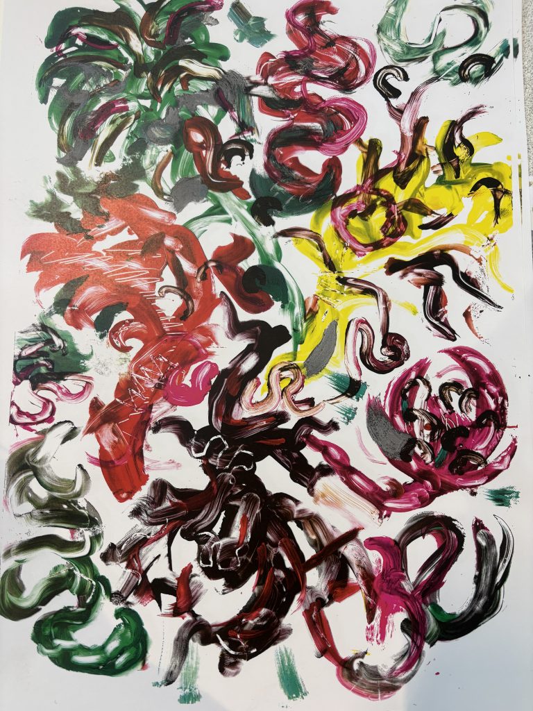 I think the good thing I got from these ten paintings is that I tried many tools and subjects. For example, I used a brush that wasn’t moistened to poke on the paper to make texture, and even put different colors on top of each other to make the visual effect richer. The toast painting made with watercolor and acrylic marker pen has a better sense of thickness than I thought before. But I also thought about my weak point: I don’t have a clear direction when creating abstract works. I choose colors just by how I feel and don’t make a plan first, which makes some works look messy.