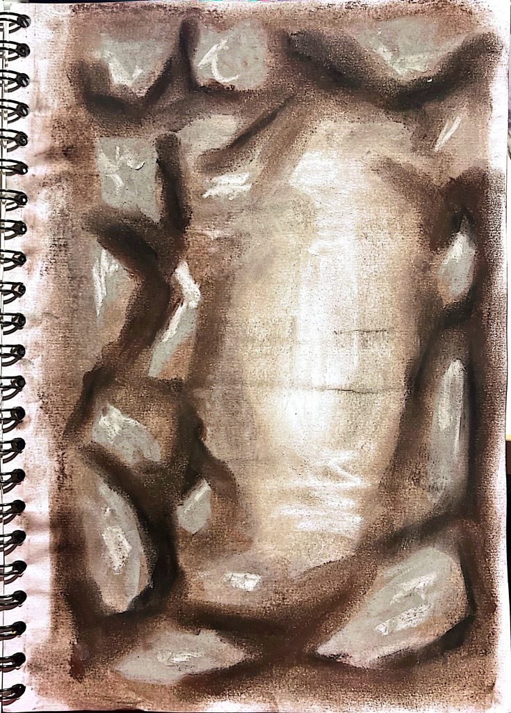 I found the other, cheaper, wavier pasties hard to work with but really enjoyed working with the medium. For the study I experimented with Mungyo pasties, which were much more effective in creating a softer, more refined look.
