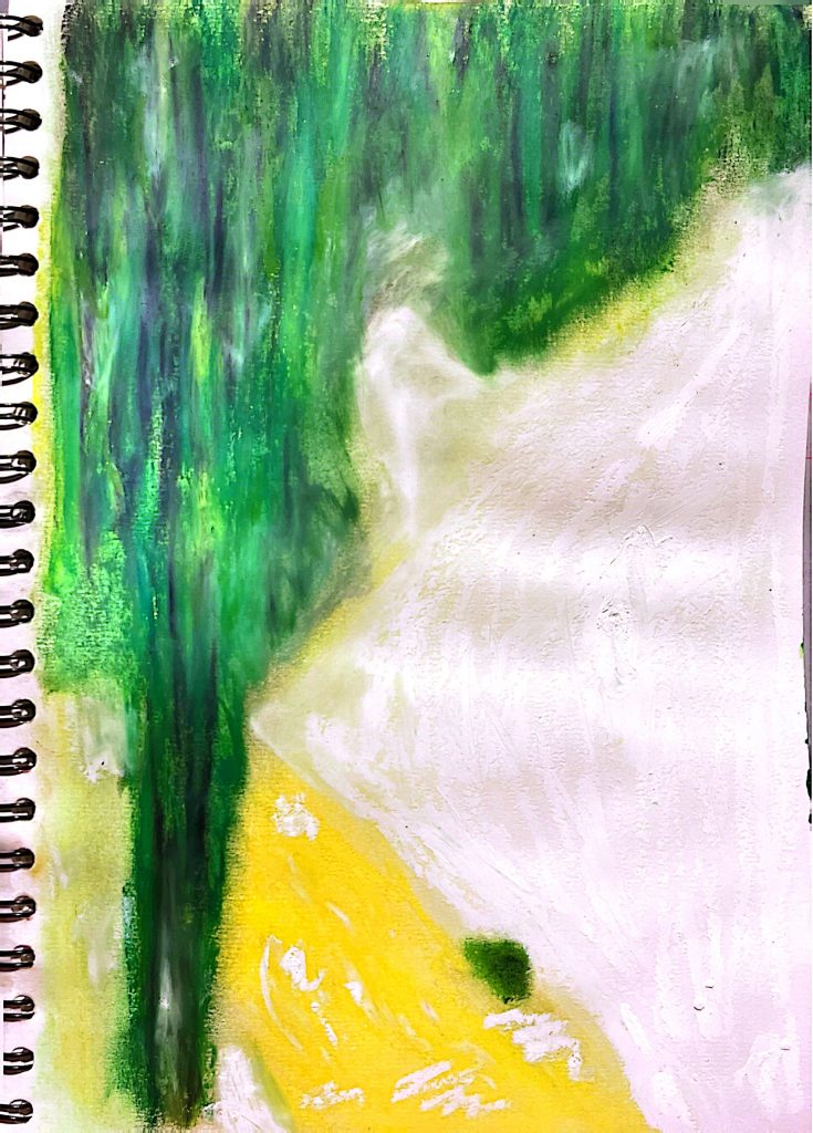 Here are a few paintings and observations from my visit to the Horniman Museum and Gardens. I found it really inspiring to observe the wide variety of plant species, and I wanted to express their vibrancy through colour and mark-making. I love the abstract feel and the sense of depth that the marks create, but I found it quite difficult to blend as the oil pastels felt quite waxy. Because of this, I couldn’t blend or layer them very effectively, so I decided to use toned paper to add depth. This worked really well, as the slightly rougher texture of the paper allowed the medium to adhere better.