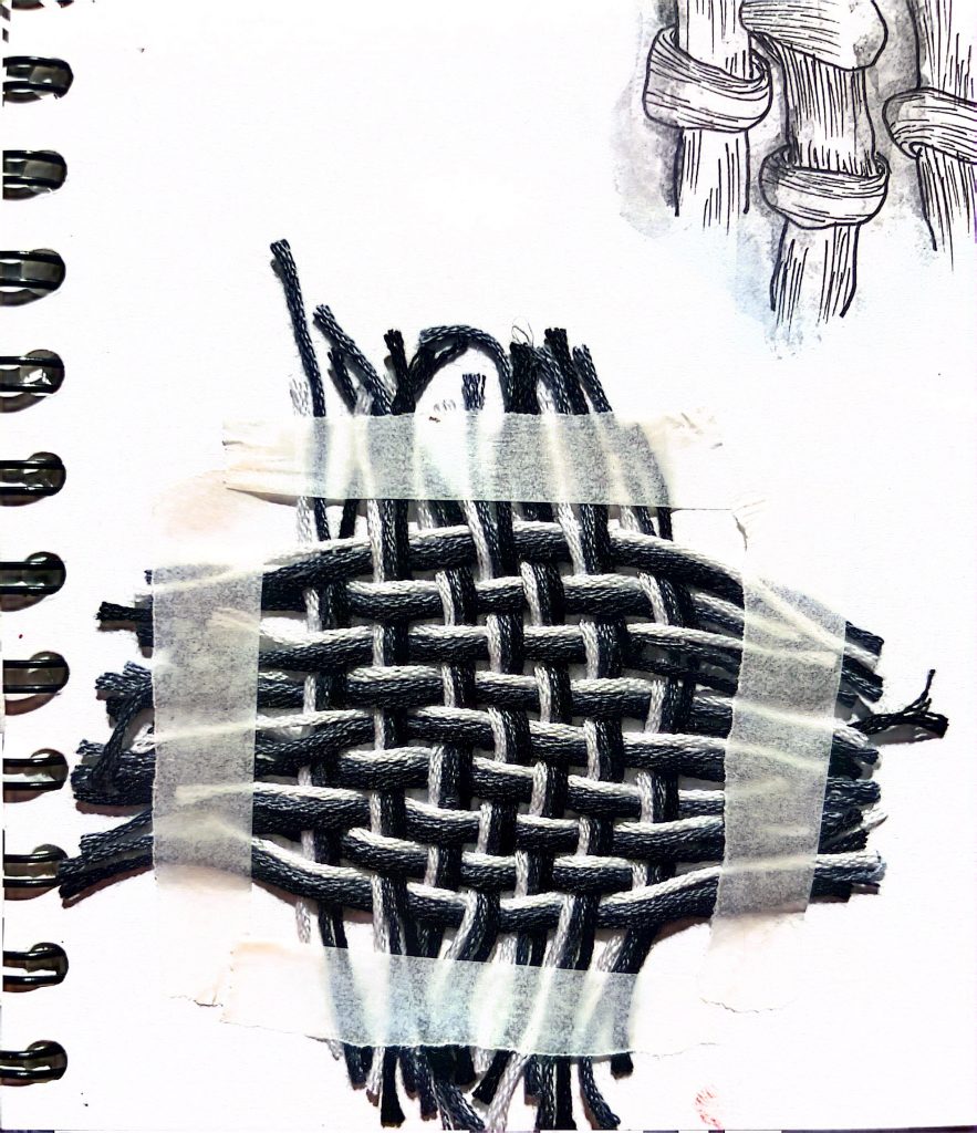 8. After observing a display board, I selected embroidery threads matching its colors and wove them together. However, I felt the piece should have been larger to be more effective, but I didn’t have enough thread.