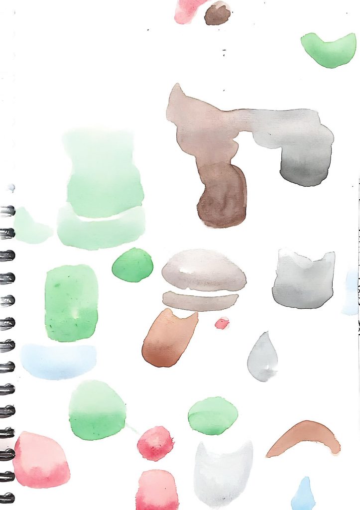 During the first week, I finished 10 paintings around the theme of “Talking Colour”. In the process of creation, I tried different kinds of tools, including watercolor, acrylic paint, acrylic markers, pencils and ink pens; I also used not common painting materials, such as paper towels for wiping the table, plastic film of the paint, and even medicine boxes. The content had specific things (house plants, homemade toast, pinecones) and abstract expressions (abstract paintings based on flowers, the color feelings that autumn brings to me). Among them, there were the most abstract paintings because I thought they could better show my own understanding of colors in a subjective way.