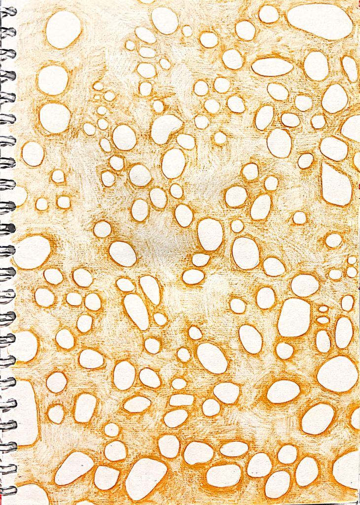 10. While trying to wipe a stain off my hand, I noticed an interesting texture on the paper towel. I used my phone to take a close-up photo and then sketched it.