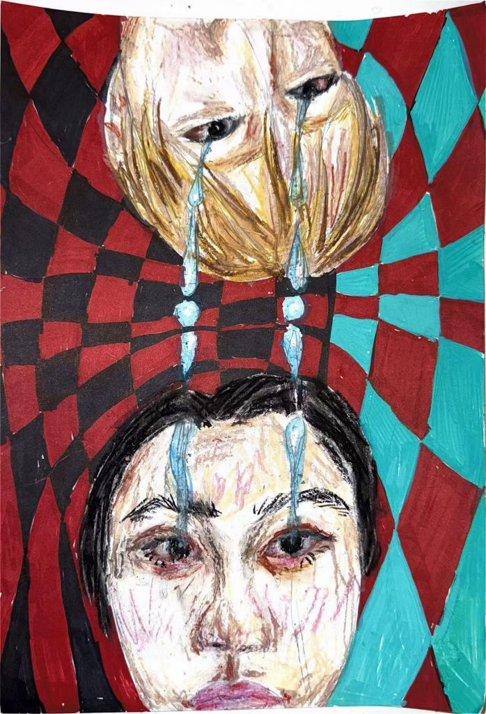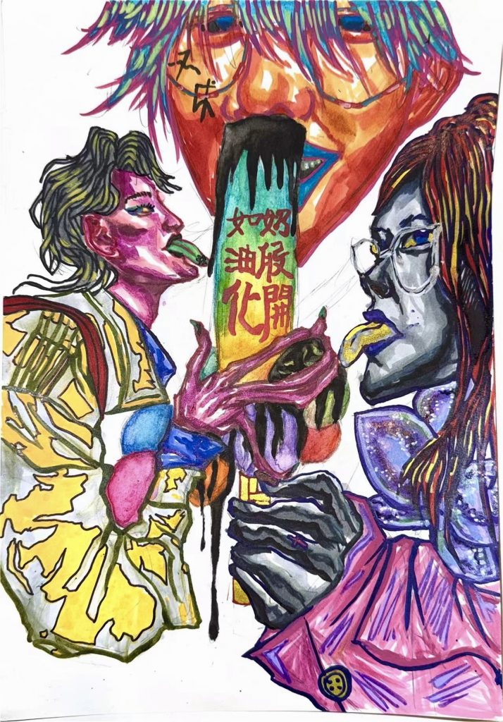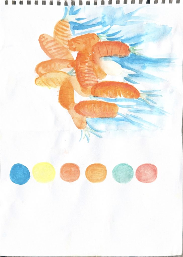 Working on this task made me realise just how much colour means to me on a personal level, I see it as an essential part of life’s meaning. Experiencing and visualising colour everyday brings me joy and allows me to express my emotions more freely. While exploring Camden and Borough Market, I encountered a wide range of colours I had never noticed before, which I found truly fascinating, and gave me ideas for my future projects/tasks. When creating my drawings, I intentionally experimented with a variety of materials including water colours, oil pastels, coloured felt tip pens, coloured pencils, ripped coloured paper, magazine and even denim fabric. I really enjoyed blending these materials to add texture, character, and depth to my work. This process not only enhanced the visiual impact of my drawings but also helped me discover my personal style and prefrences in designing and live drawing, whether its what materials I connect with most, and which ones I dont.