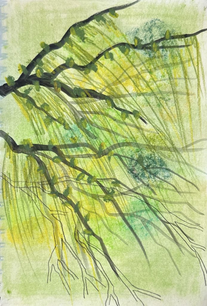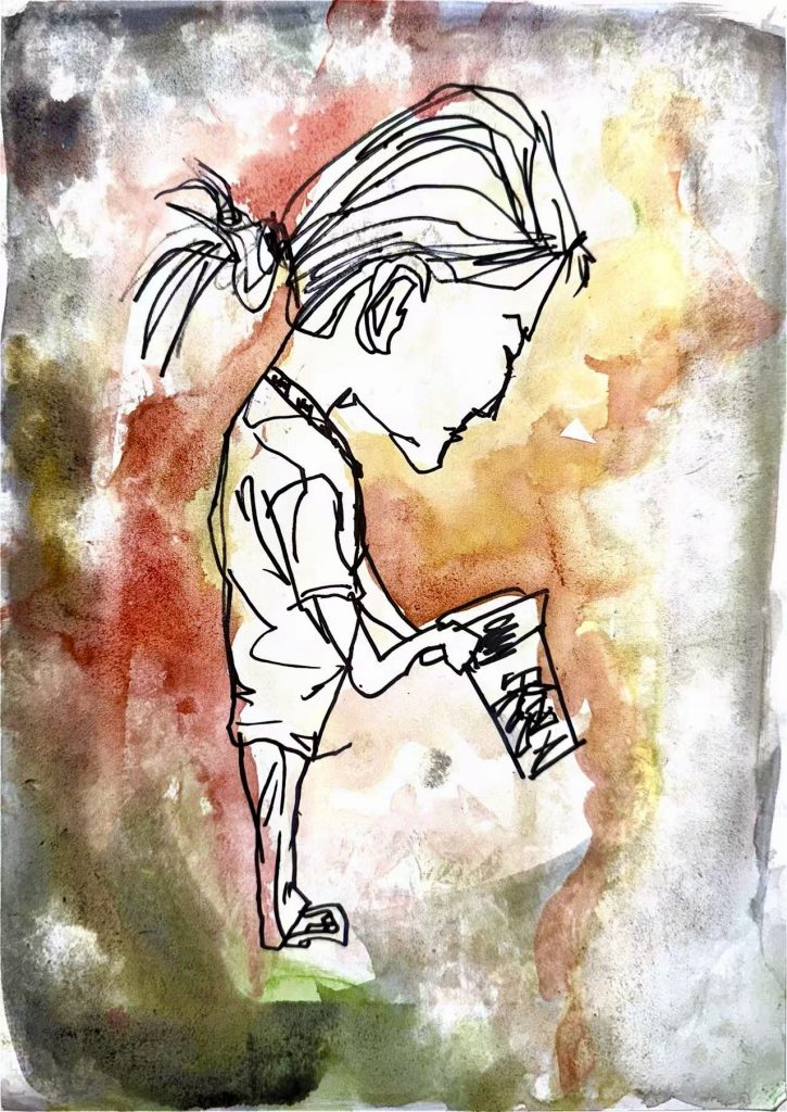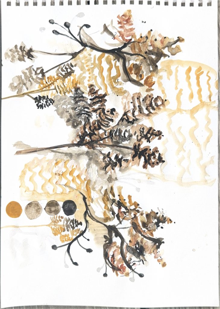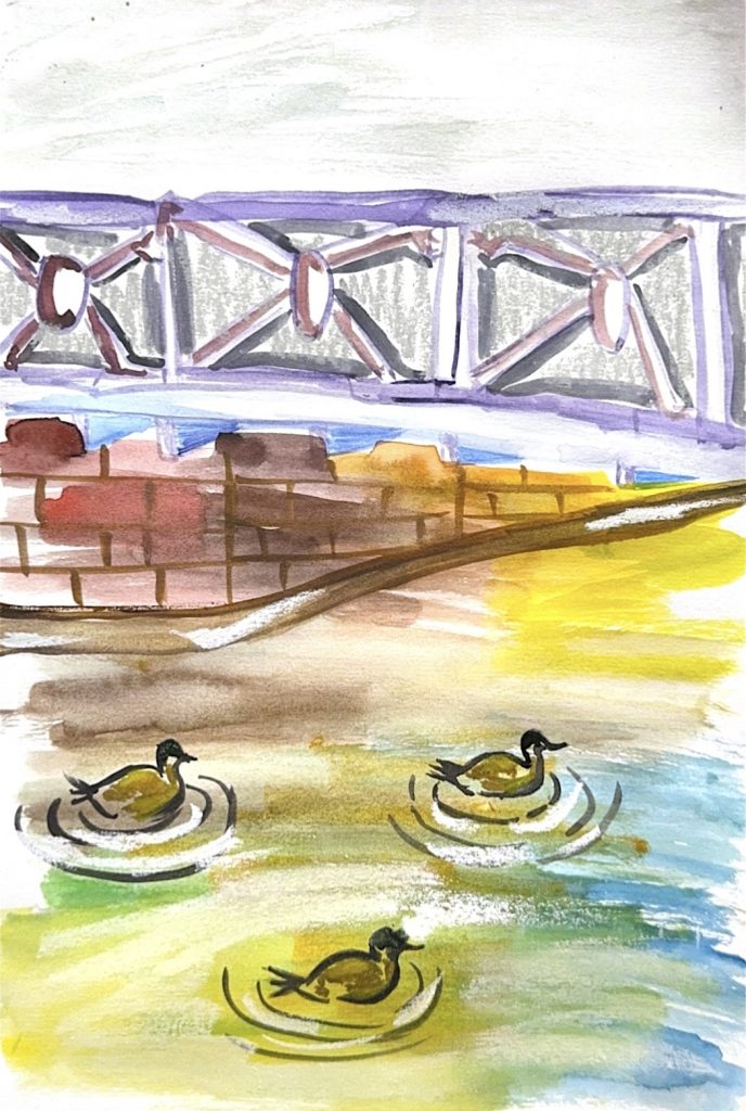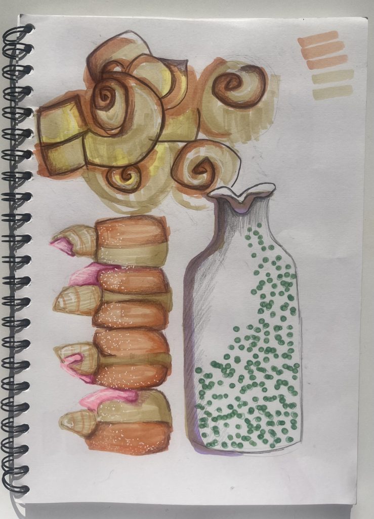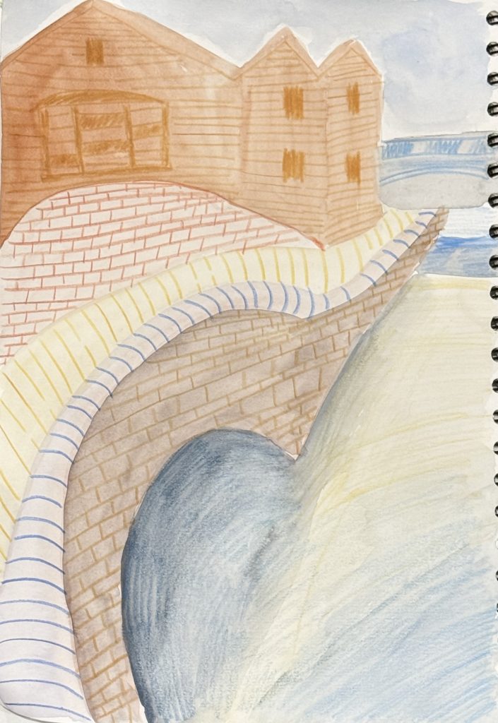 9. This is a quick sketch and colour study of a postbox I came across while walking though the streets of London central. I was drawn to its distinctive shape and vibrant green colour, which made it unique and stand out from the other postboxes. To capture its character, I used watercolours for the base tones, oilpastels to add texture and depth, and fine line marker pens for more of defined detail look on the outlines.