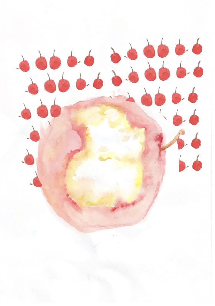 5. This particular photo was inspired by a vibrant fruit and veg stall stall i came across at Borough Market. I was especially drawn to the rich variety of tomatoes, displayed in an array of sizes and deep, stricking colours. To capture this scene I decided to use water colours as a base, and then work on top with water colours to add texture and shadows. I also used felt tip pens to give the drawing more of a defined look.